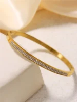 ارتقي بإطلالتك مع هذه الأساور الراقية المصنوعة من الفولاذ المقاوم للصدأ والمزيّنة بزركون لامع يعكس بريقك الداخلي.