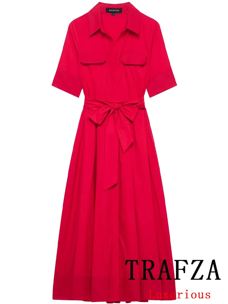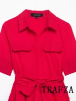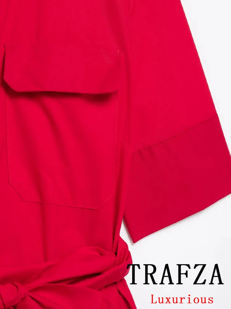 اختاري الأناقة البسيطة والعملية مع فستان TRAFZA الأحمر الطويل، المصمم بقصّة عصرية تجمع بين الراحة والأناقة. يتميز بأكمام قصيرة ولمسة من الشياكة الكاجوال، مع وجود جيوب تضيف لمسة عملية مميزة. اللون الأحمر يمنحك حضورًا لافتًا، ما يجعله مثاليًا لمشاوير النهار أو الخروجات الصيفية.