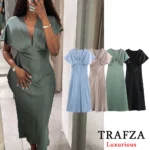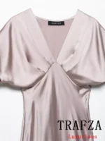 تألقي هذا الموسم بإطلالة أنثوية ساحرة مع فستان TRAFZA المصنوع من قماش الساتان الفاخر. يتميز بقصة مستقيمة وانسيابية تُبرز جمال القوام، مع رقبة V عميقة تضيف لمسة جريئة وأنيقة. تصميم بأكمام قصيرة ولمسة ناعمة تجعله مثالياً لحفلات الربيع والصيف أو السهرات الراقية.